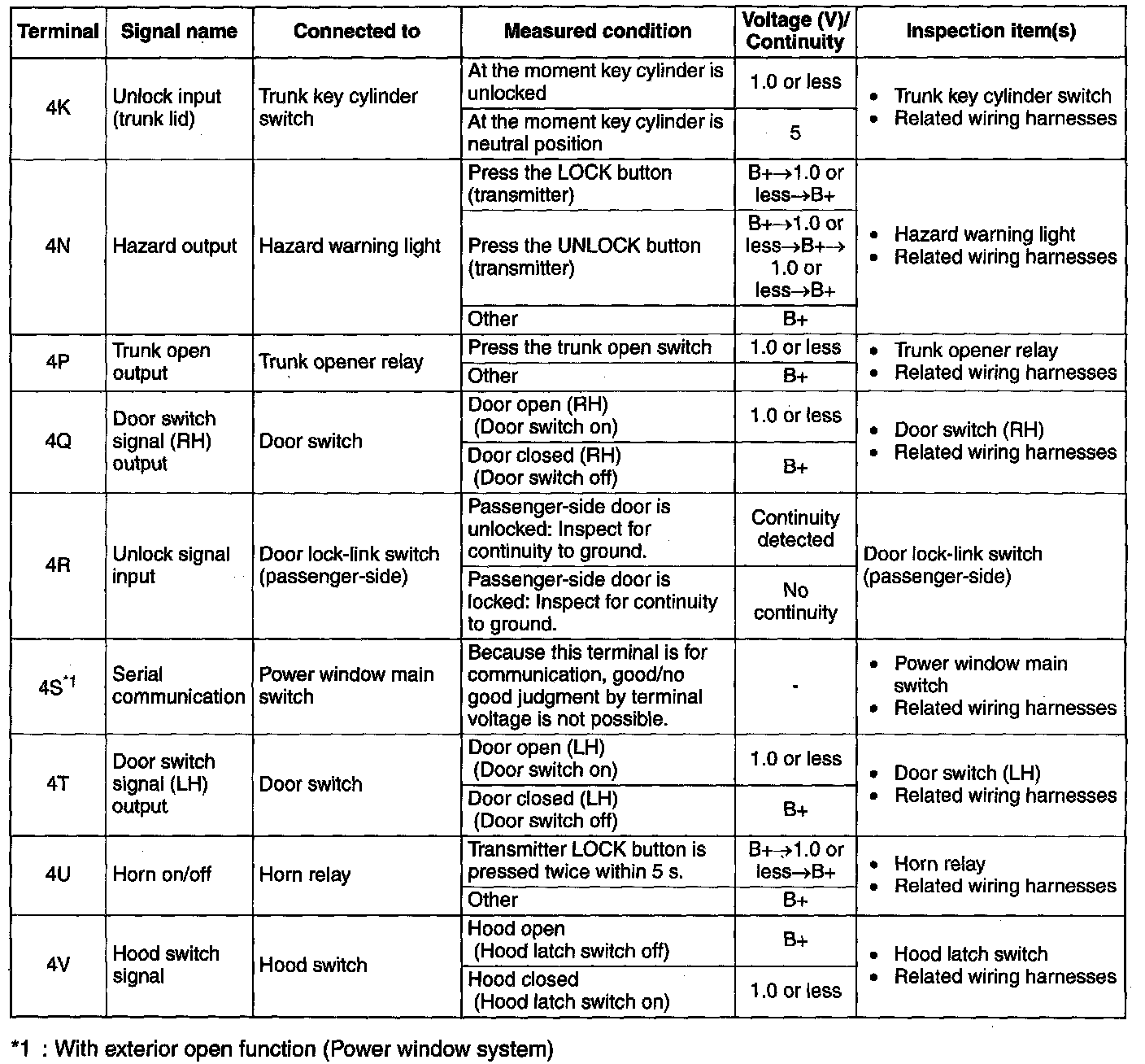 Terminal Voltage Table (Reference) (Part 1):