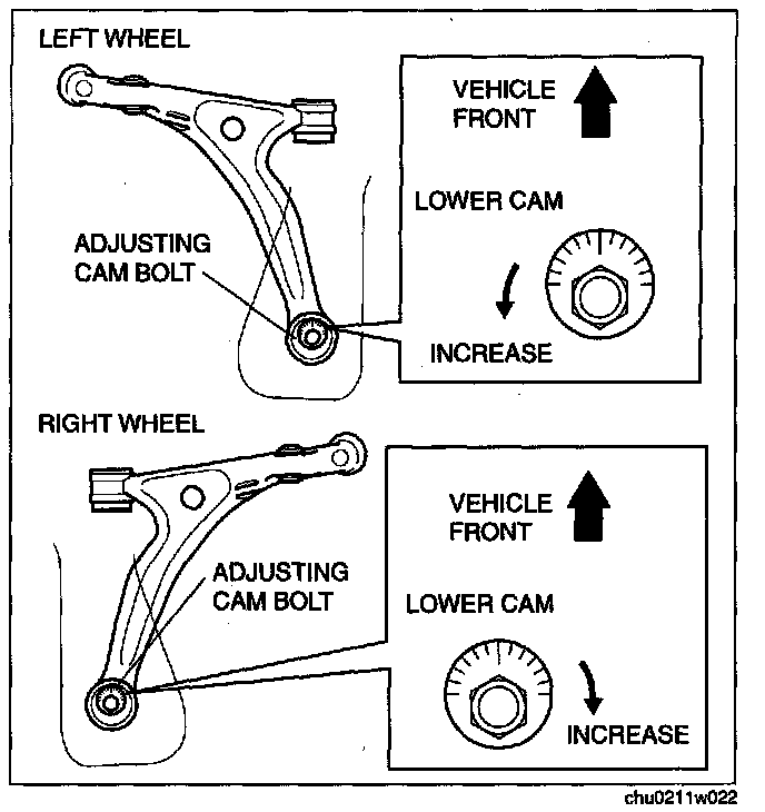 2. Rotate the adjusting cam bolt in either direction to adjust the caster.