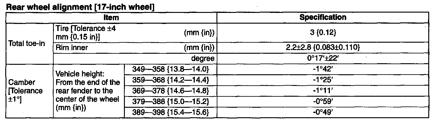 Rear wheel alignment [17-inch wheel]Rear wheel alignment [17-inch wheel]: