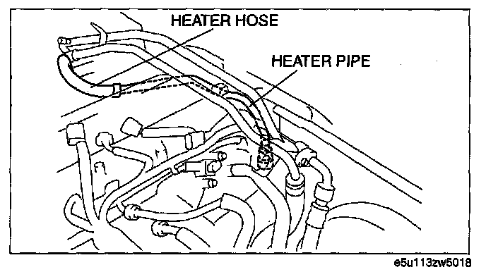 5. Disconnect the heater hose and move the heater pipe slightly out of the way.