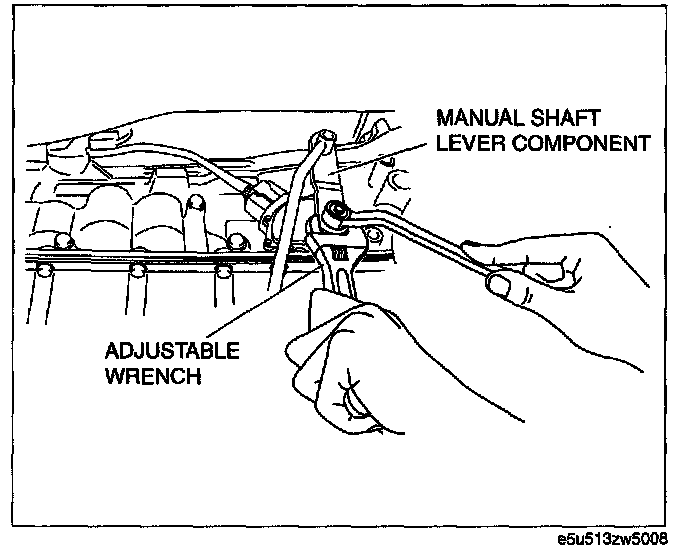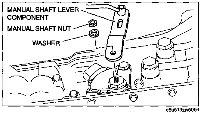 ^ Do not use an impact wrench. Hold the manual shaft lever when removing the manual shaft nut, otherwise the transmission may be damaged.