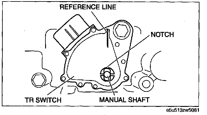 18. Verify the TR switch reference line and the notch of the manual shaft are aligned.