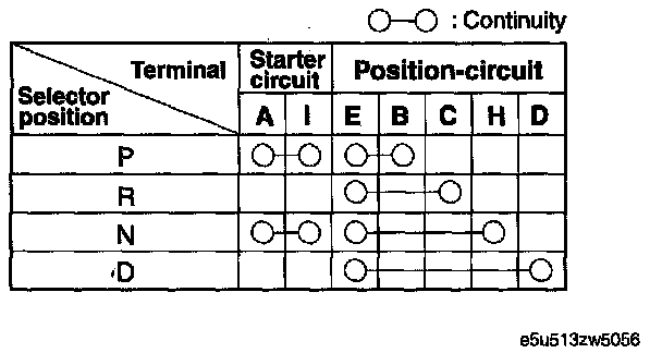 1. Verify that the starter operates only when the ignition switch is turned to the START position with the selector lever in the P or N position.