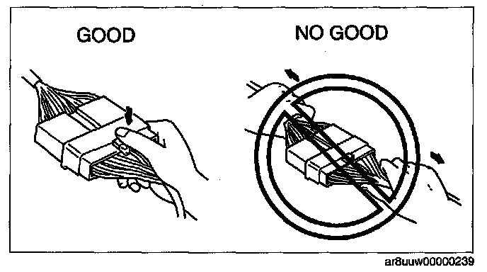- When disconnecting connector, grasp the connectors, not the wires.