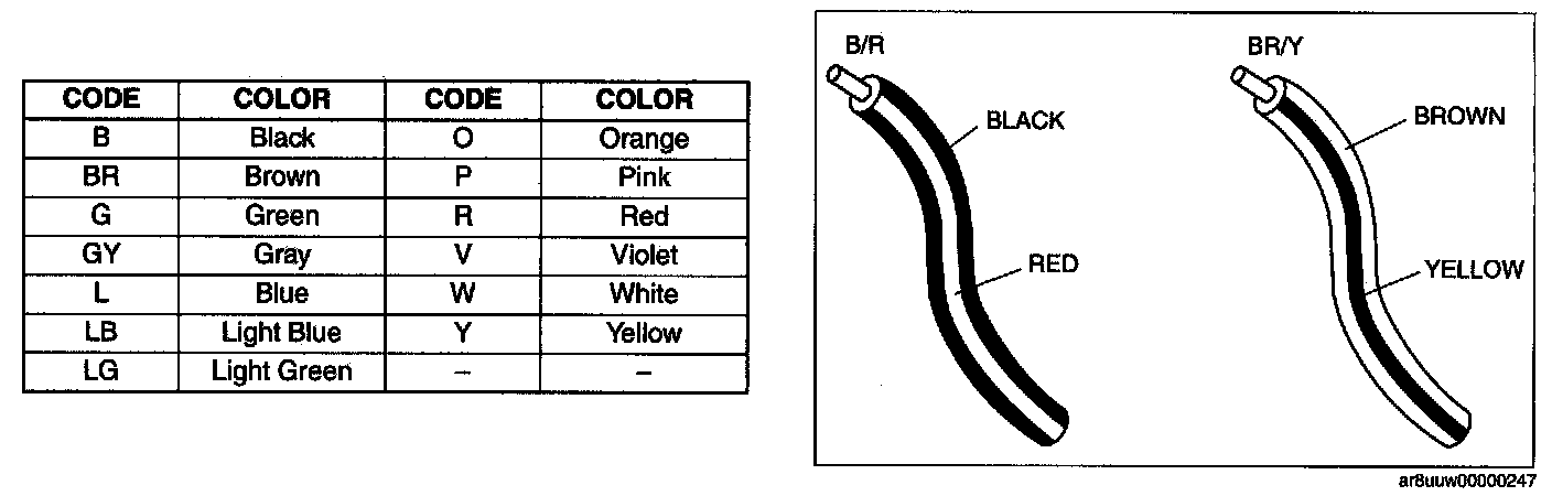 - The first letter indicates the base color of the wire and the second the color of the stripe.