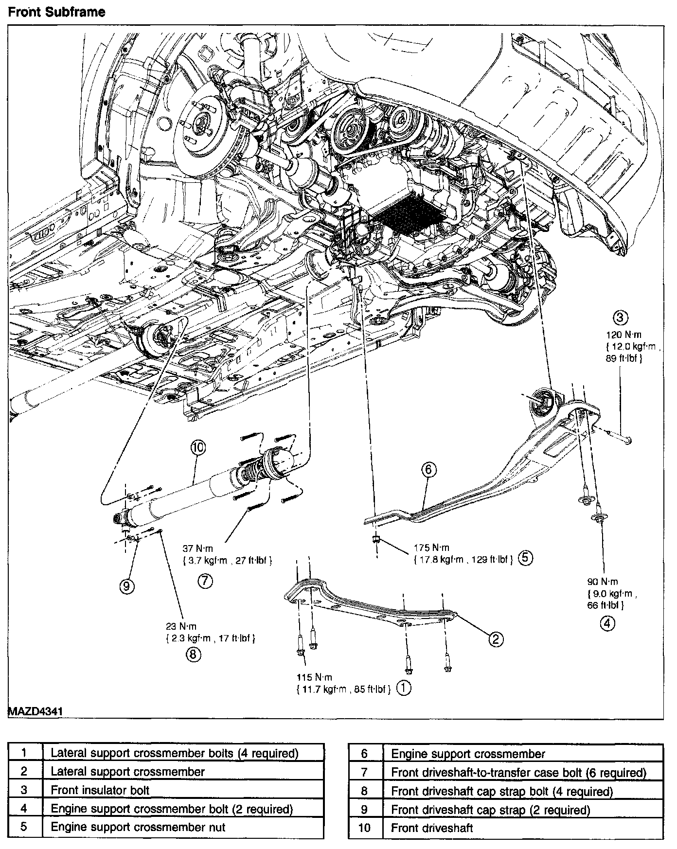 FRAME ASSEMBLYThe subframe is bolted to the body and: