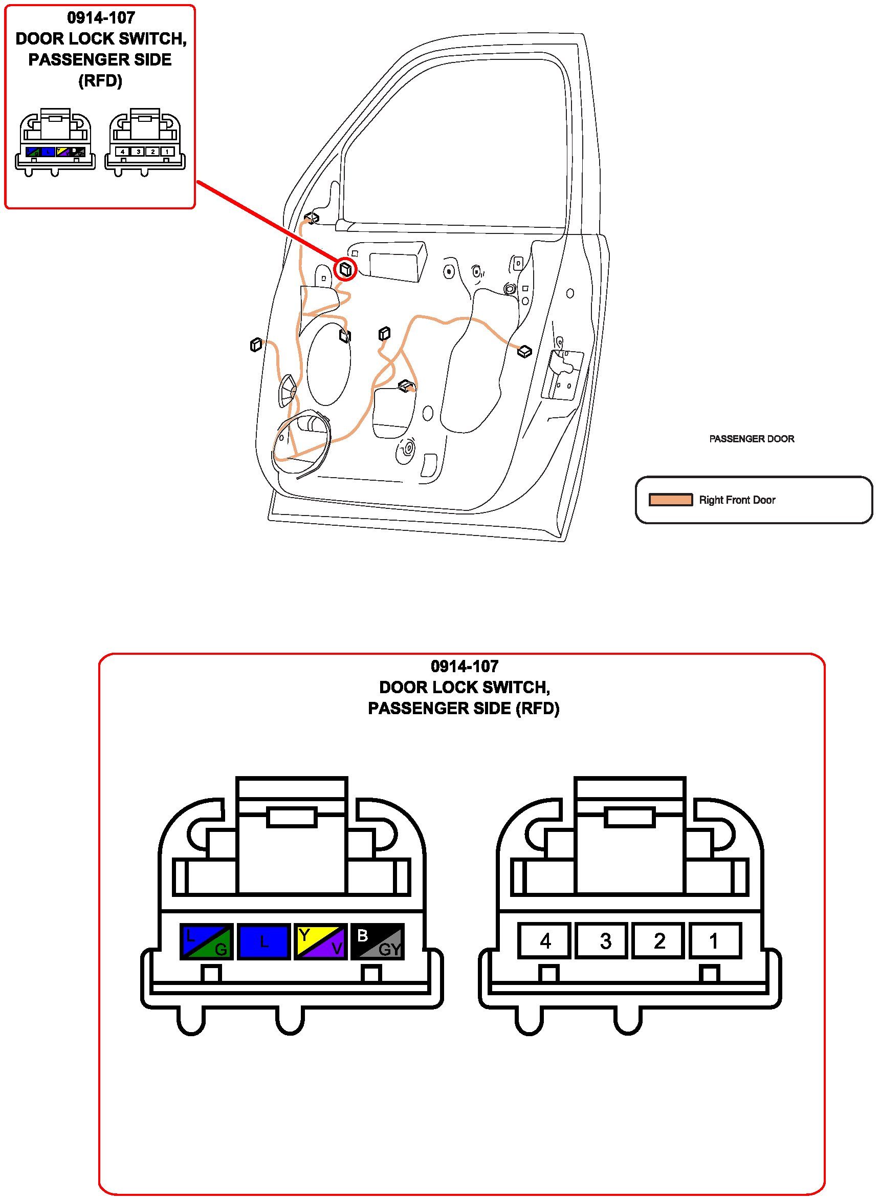 Door Lock Switch, Passenger Side: