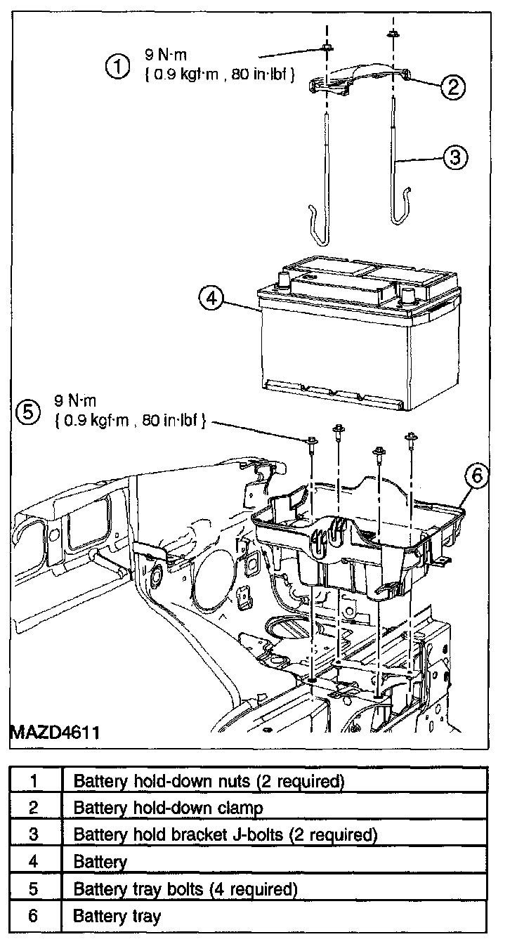 BATTERY AND BATTERY TRAY - EXPLODED VIEW