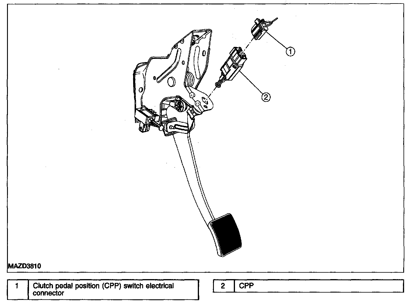 CLUTCH PEDAL POSITION (CPP) SWITCH REMOVAL/INSTALLATION1. Disconnect the clutch pedal position (CPP) electrical connector.