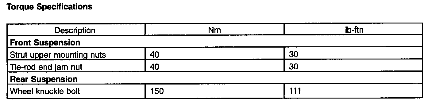 Torque Specifications: