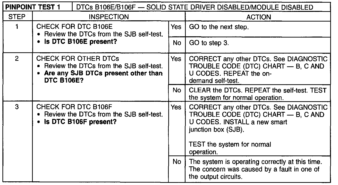 PINPOINT TEST 1: DTCs B106E/B106F - SOLID STATE DRIVER DISABLED/MODULE DISABLEDNormal Operation