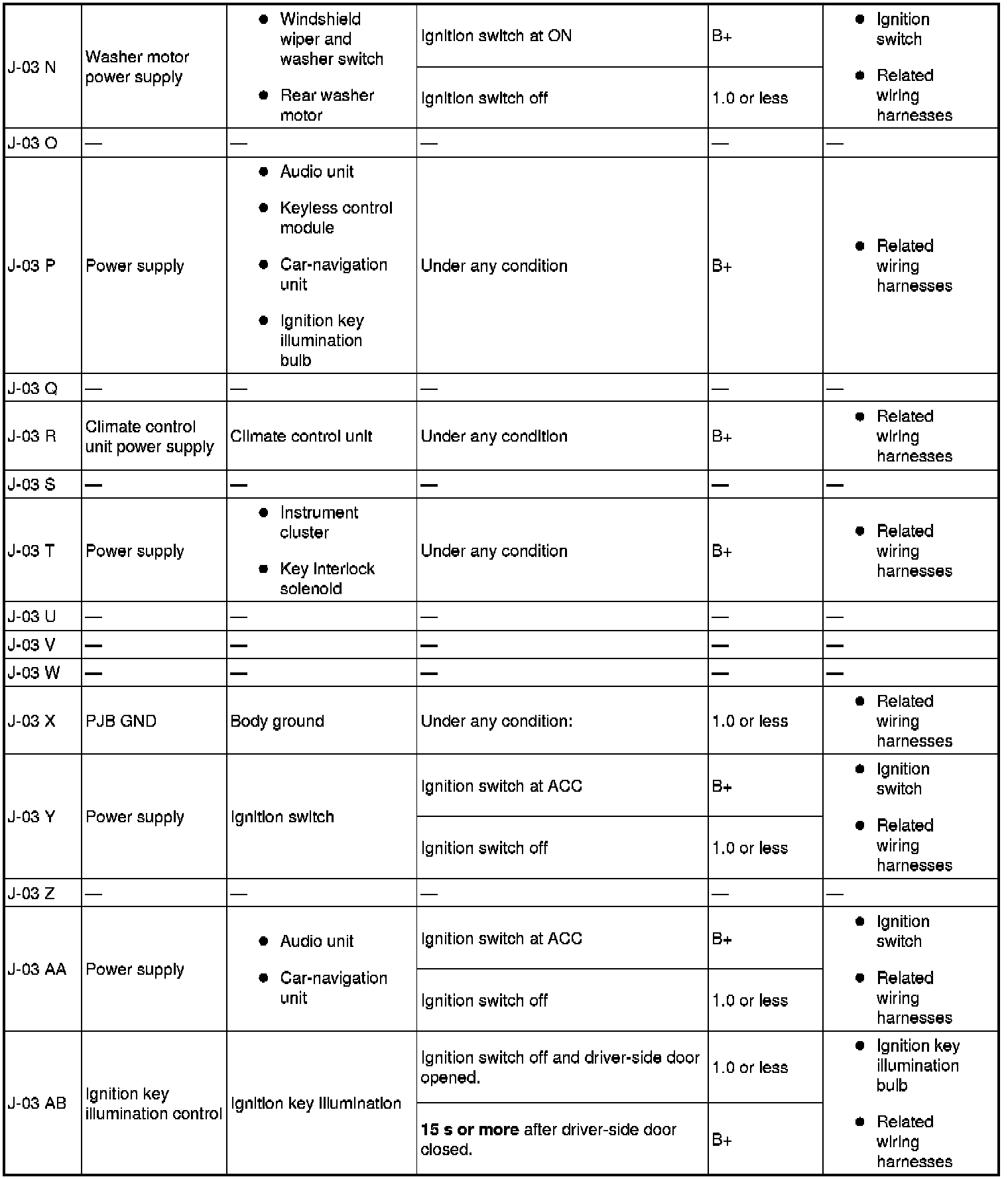 - Terminal connected: J-03 AI (+)-Negative battery terminal