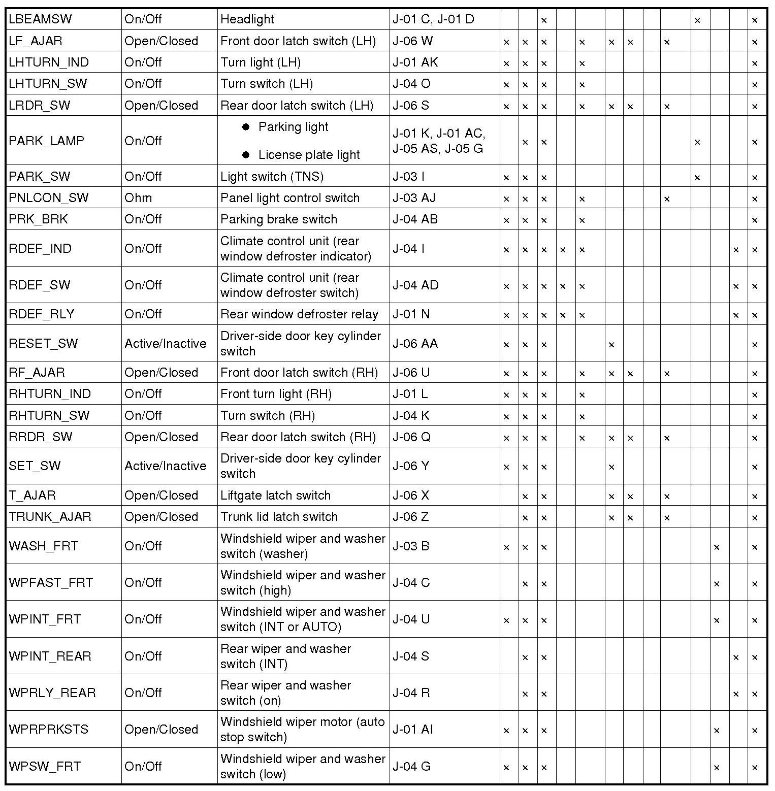 - T_AJAR: Trunk/liftgate ajar