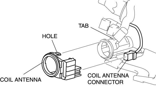 4. Detach the steering lock tabs from the holes on the coil antenna.