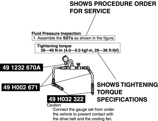 - Simple operations which can be performed easily just by looking at the vehicle (i.e., removal/installation of parts, jacking, vehicle lifting, cleaning of parts, and visual inspection) have been omitted.