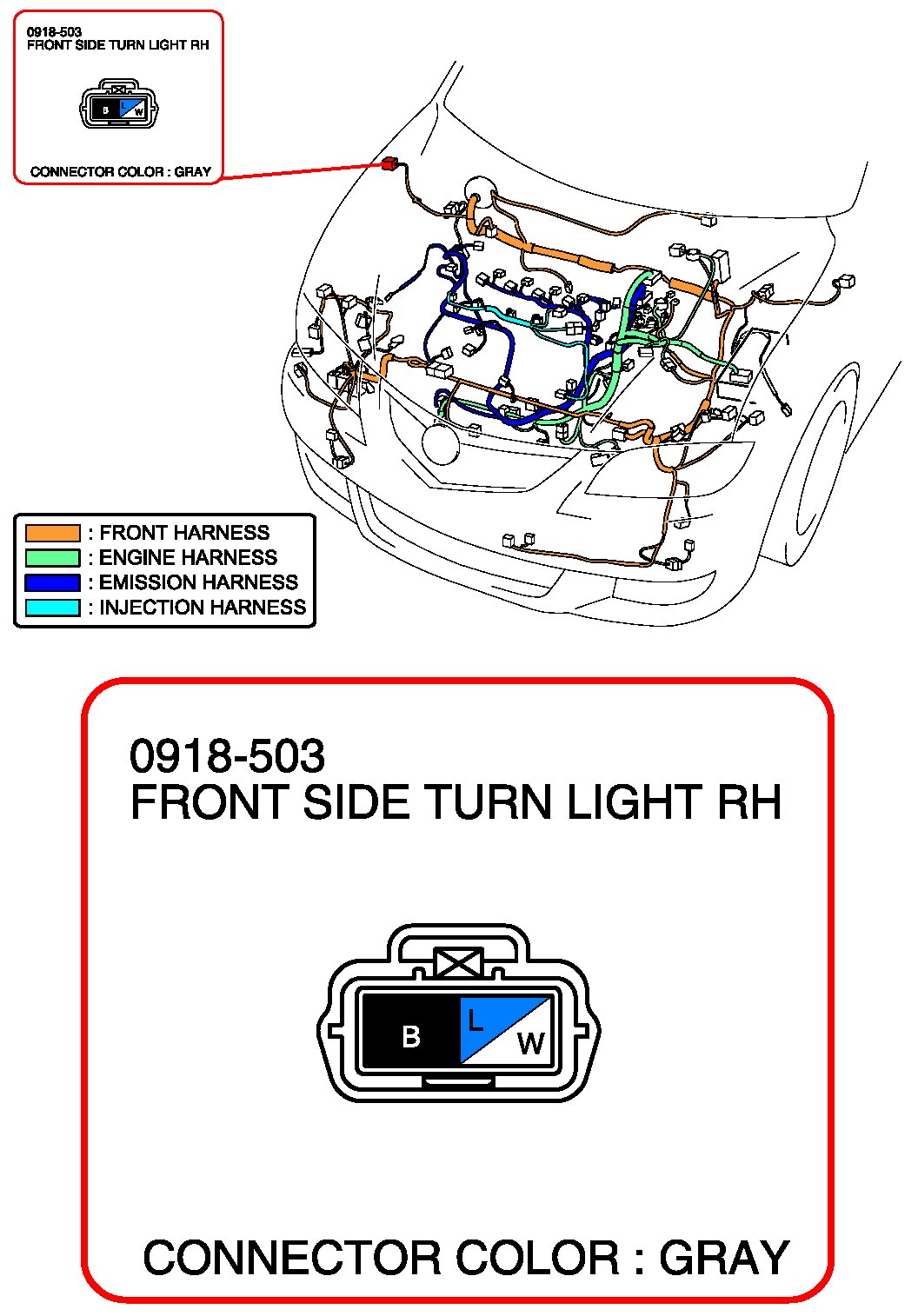 Front Side Turn Light RH: