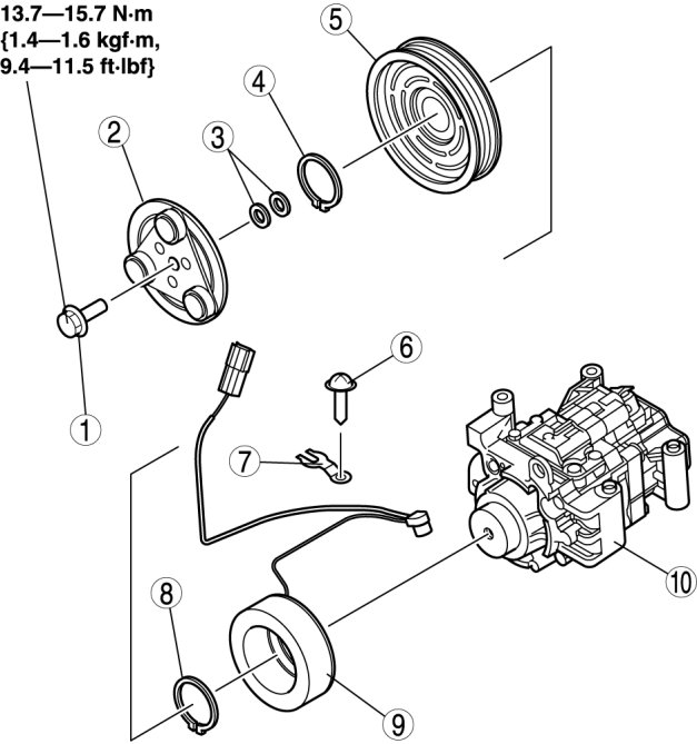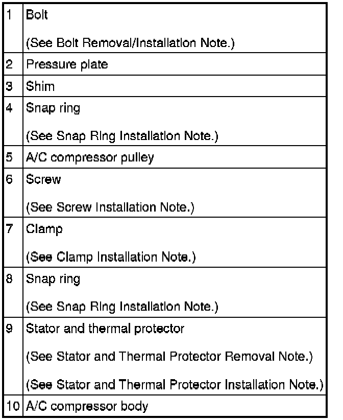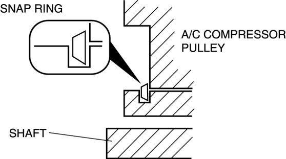 1. When installing a new pressure plate, A/C compressor pulley, stator, or A/C compressor body, replace the snap ring.