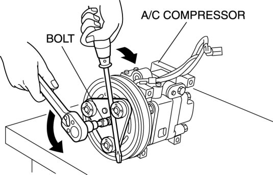 2. When installing a new A/C compressor body, replace the recommended bolt.
