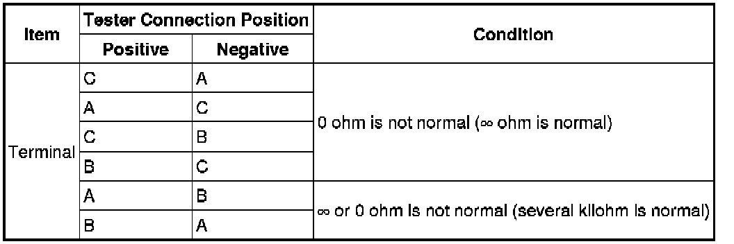 2. Measure the resistance between each terminal on the ignition coil connector using an analog circuit tester.