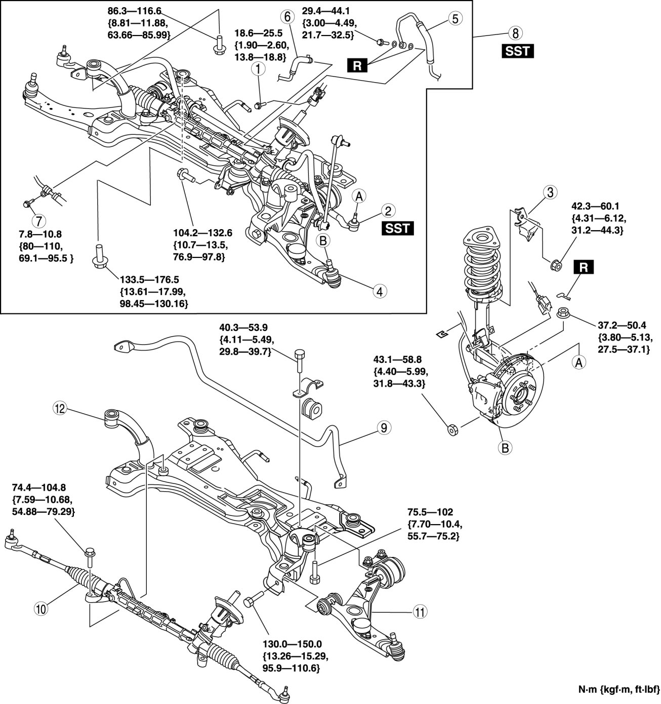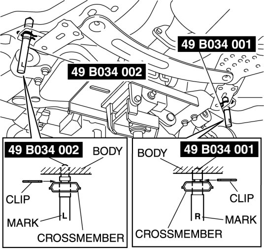 1. Verify the left and right identification marks and install the positioning SST to the front crossmember.