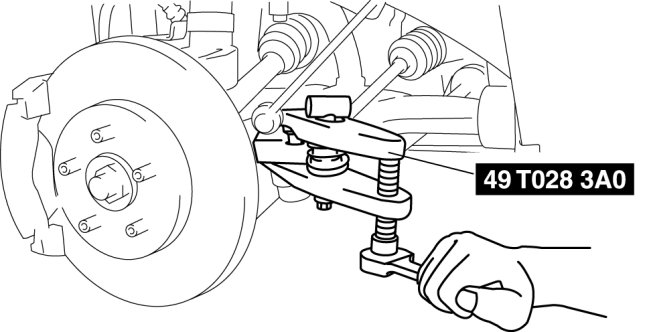 - Performing the following procedures without first removing the ABS wheel-speed sensor may possibly cause an open circuit in the wiring harness if it is pulled by mistake. Before performing the following procedures, disconnect the ABS wheel-speed sensor wiring harness connector (axle side) and fix the wiring harness to an appropriate place where it will not be pulled by mistake while servicing the vehicle.