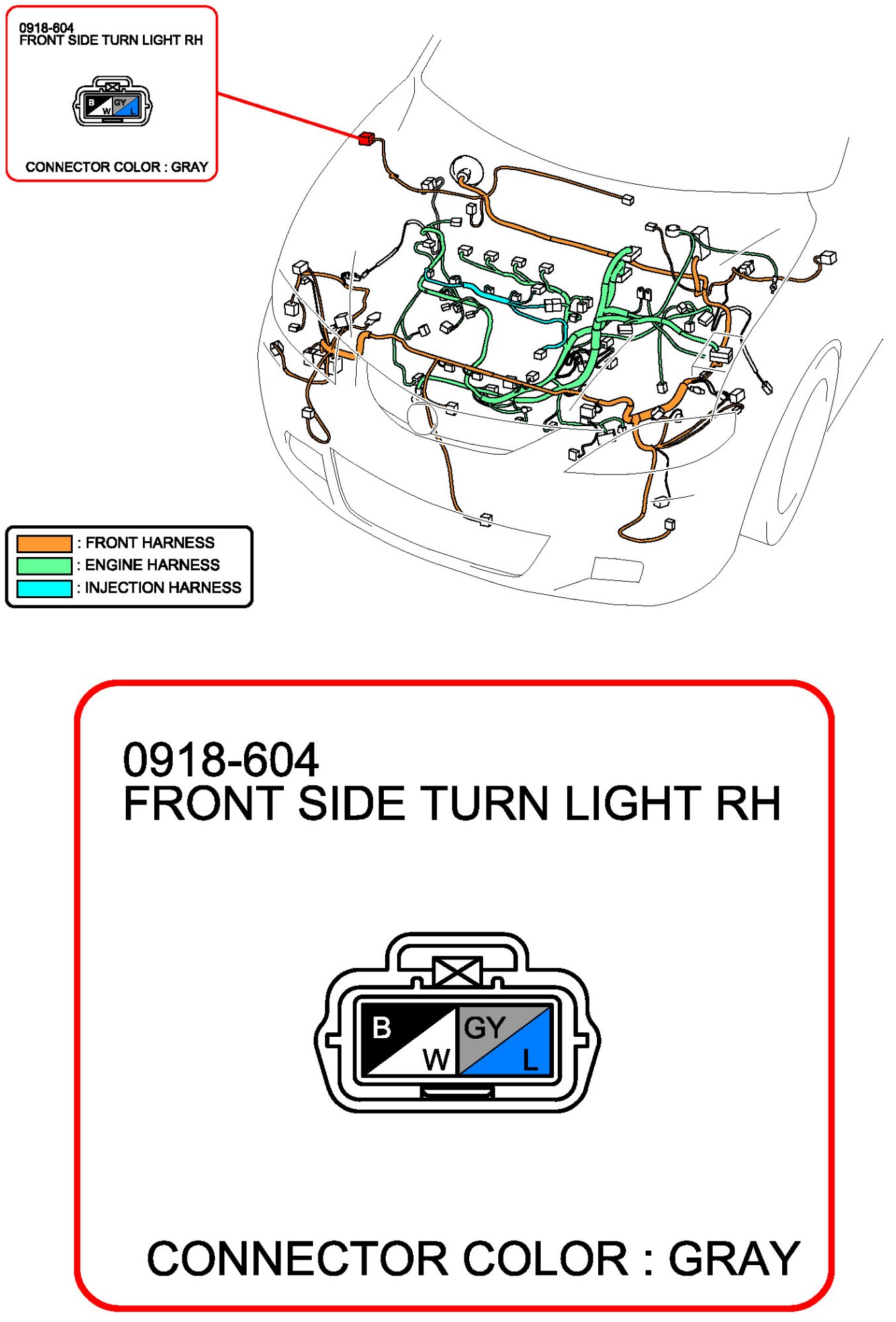 Front Side Turn Light RH: