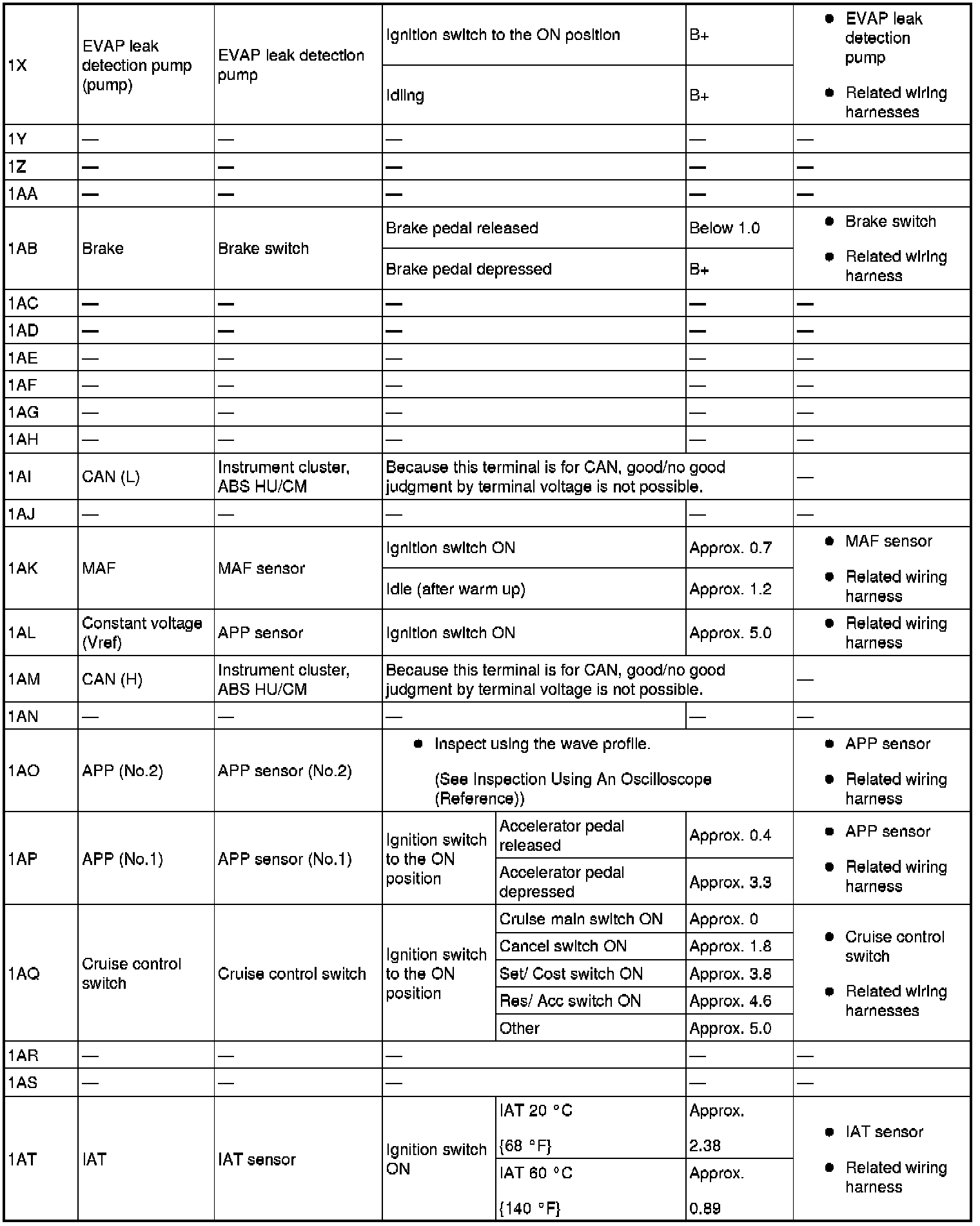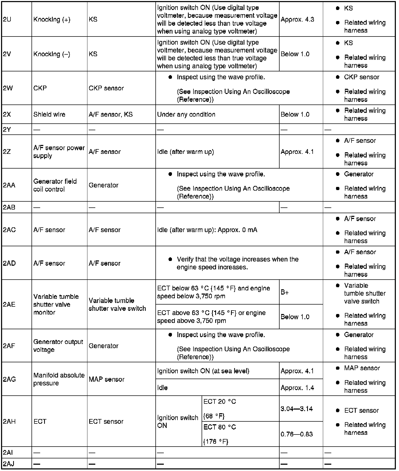 - The PCM terminal voltage can vary with the conditions when measuring and changes due to aged deterioration on the vehicle, causing false diagnosis. Therefore determine comprehensively where the malfunction occurs among the input systems, output systems, and the PCM.