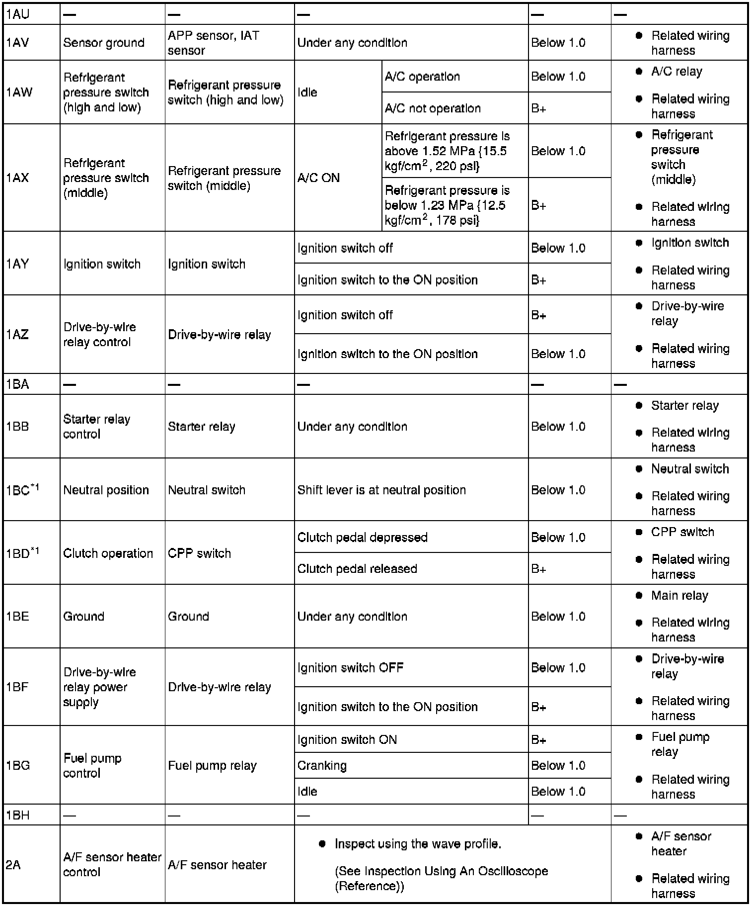 - Fuel Injection No.1: 2BB (+)-body ground (-)