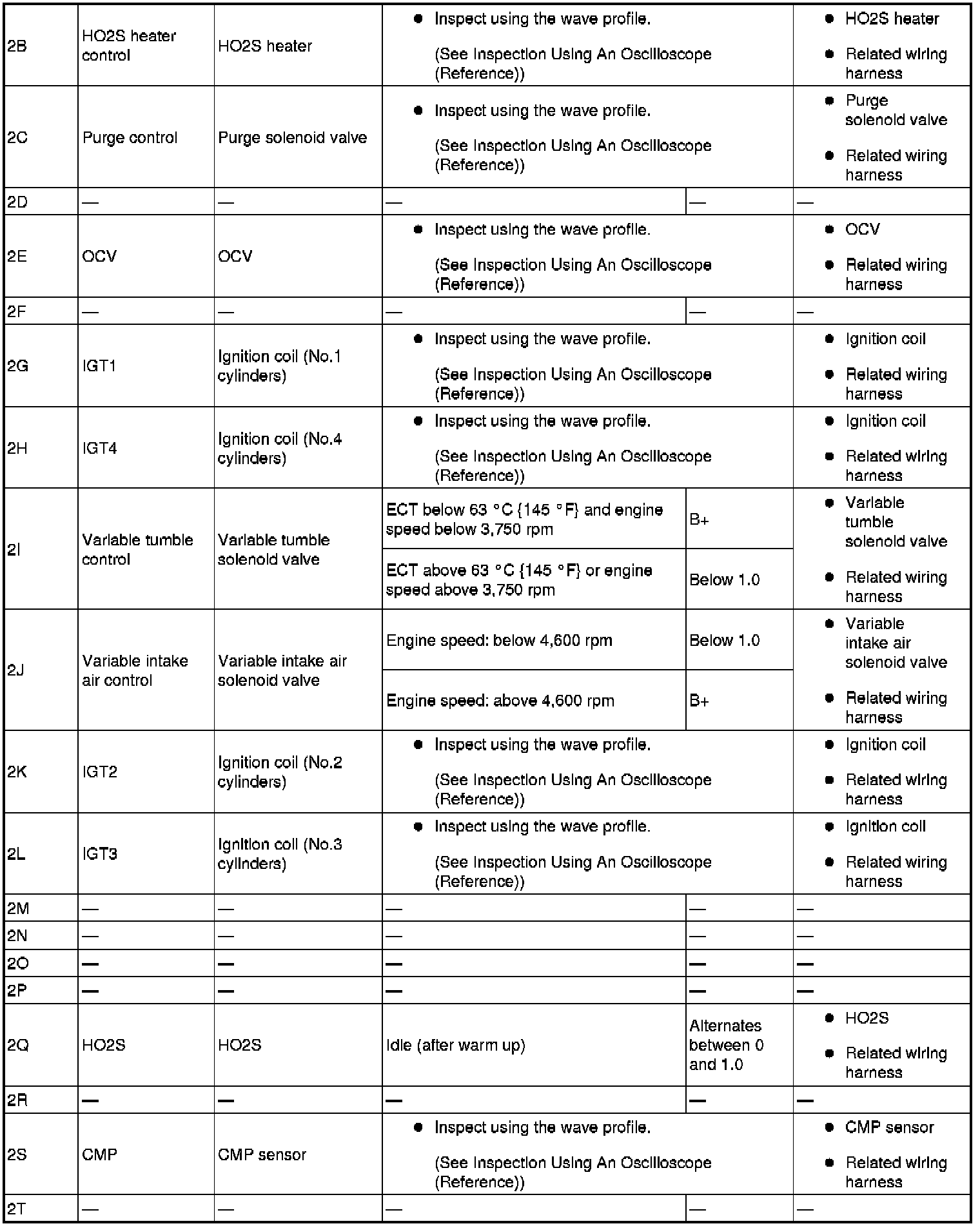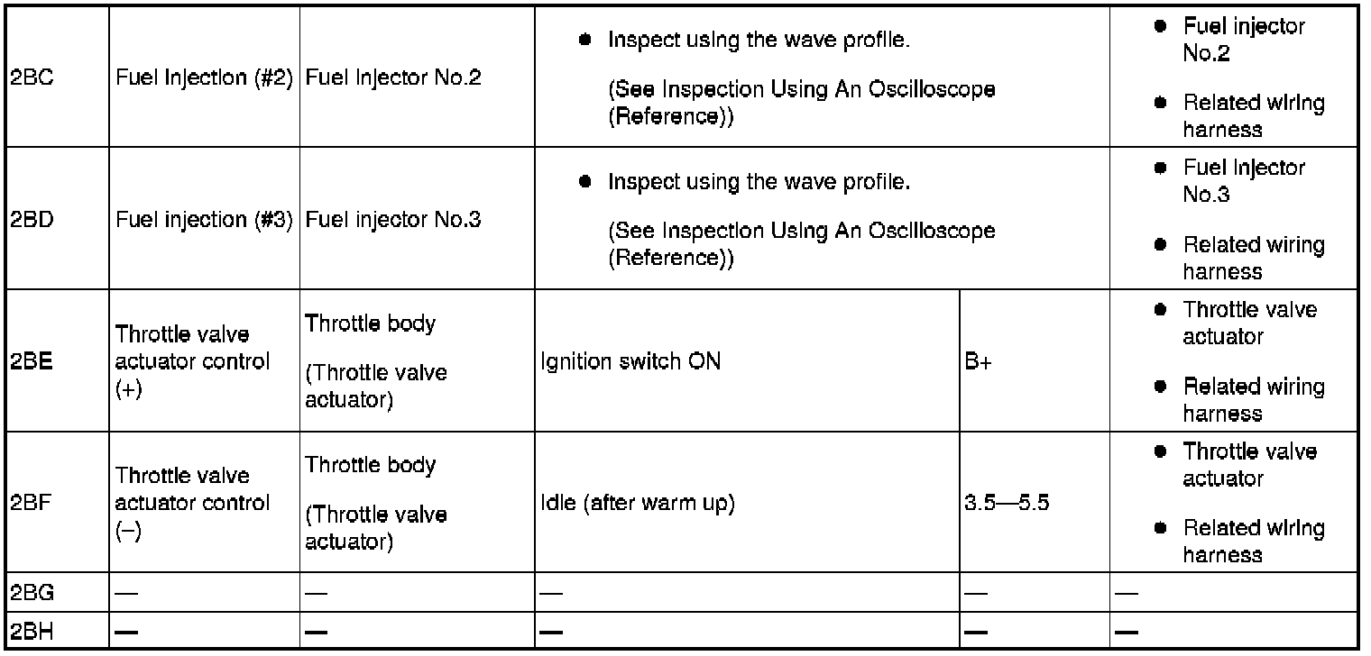 - Fuel Injection No.2: 2BC (+)-body ground (-)