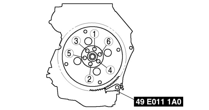 Tighten the drive plate mounting bolts in two or three steps in the order as shown in the figure.