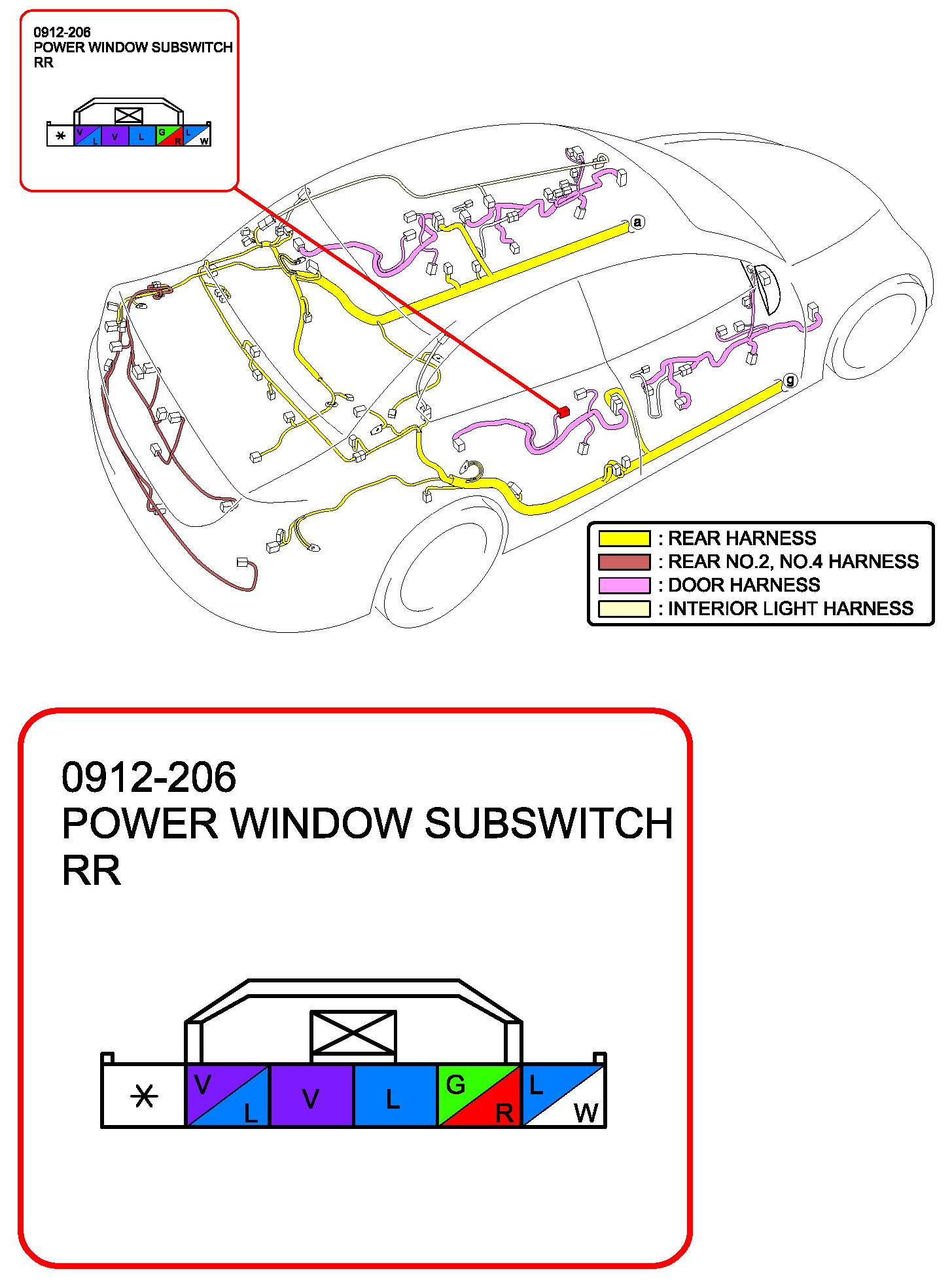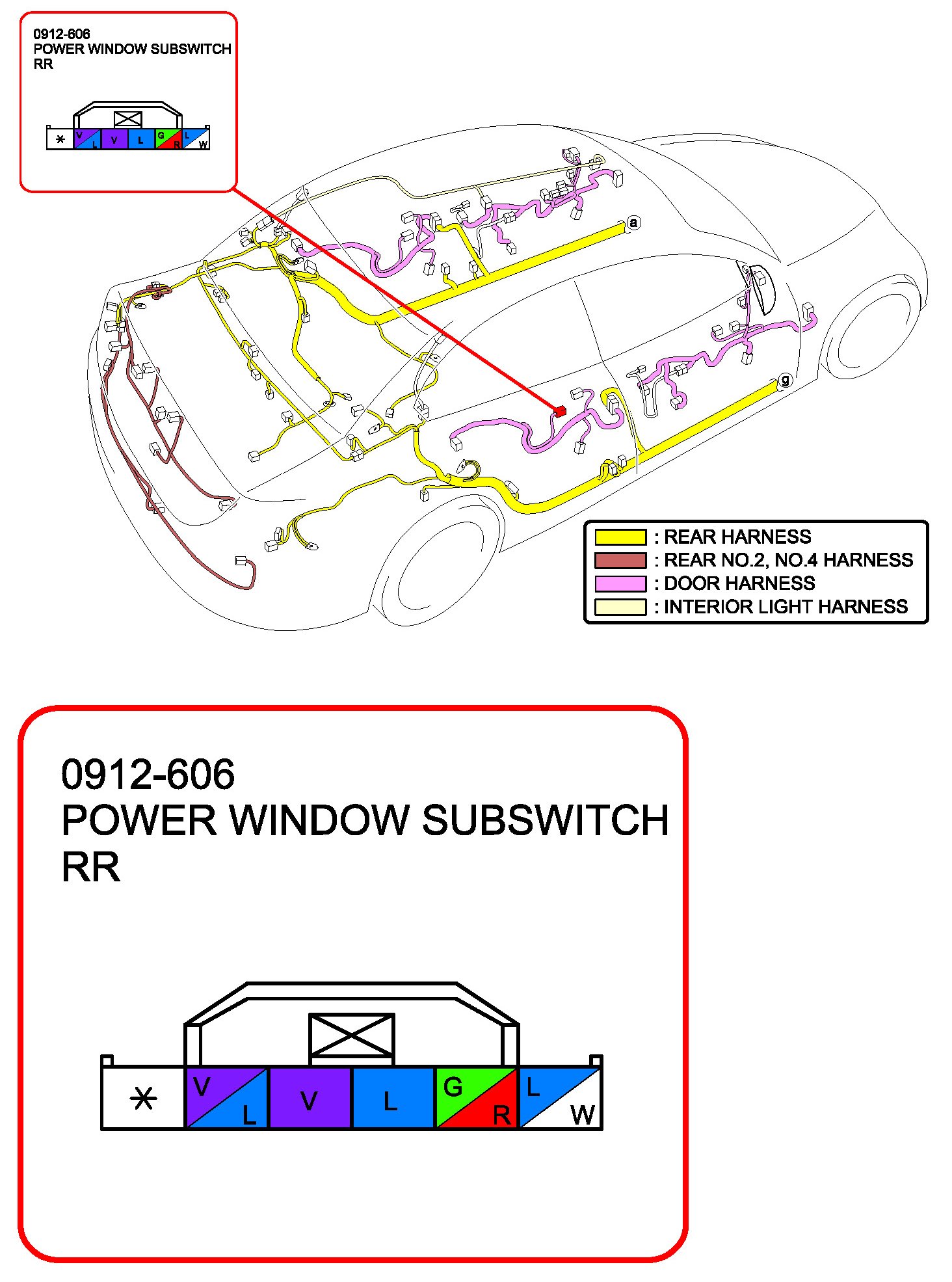 Power Window Subswitch RR (Without Retractable Outer Mirror):