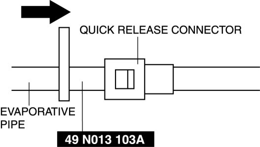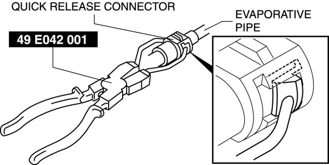 - A checker tab is integrated with the quick release connector for new evaporative hoses and evaporative hoses. Remove the checker tab from the quick release connector after the connector is completely engaged with the evaporative pipe.
