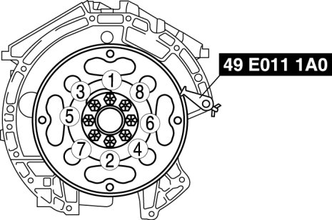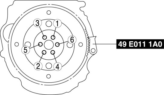 AW6A-ELTighten the new drive plate mounting bolts in two or three steps in the order shown.