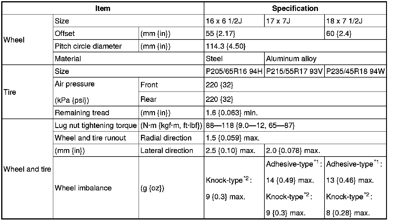 One balance weight: 60 g {2.12 oz} max. If the total weight exceeds 100 g {3.53 oz} on one side, rebalance after moving the tire around on the rim. Do not use three or more balance weights.