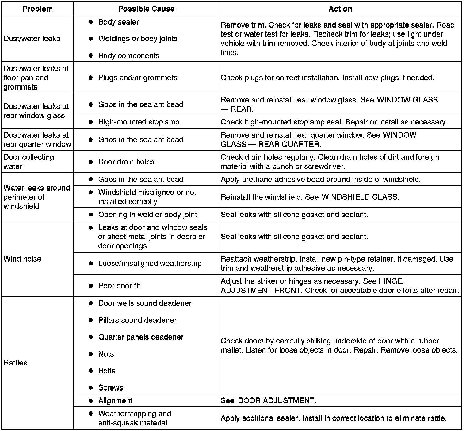 SYMPTOM TROUBLESHOOTING CHART - BODY SYSTEM