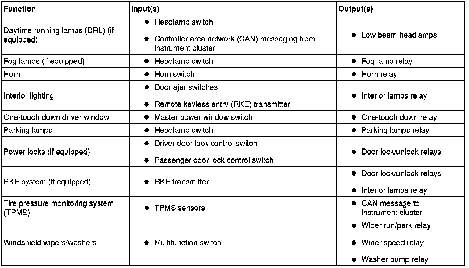 The SJB is a multifunction module that controls many of the vehicle systems. Several SJB functions utilize hardwired inputs and/or outputs. The SJB controls the following hardwired functions, using the corresponding inputs and outputs: