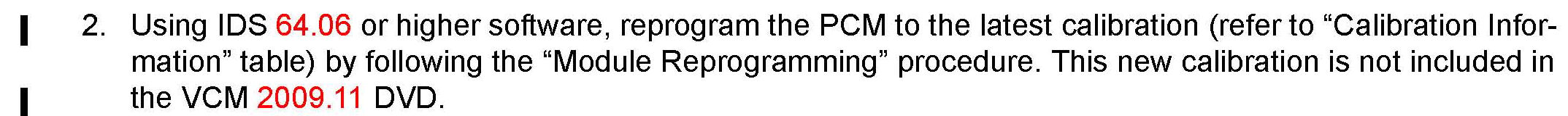 ^ When reprogramming a PCM, IDS will always display the latest" calibration P/N available for that vehicle. If any calibration has been revised/updated to contain new information for a new service concern/issue, it will also contain all previously released calibrations.