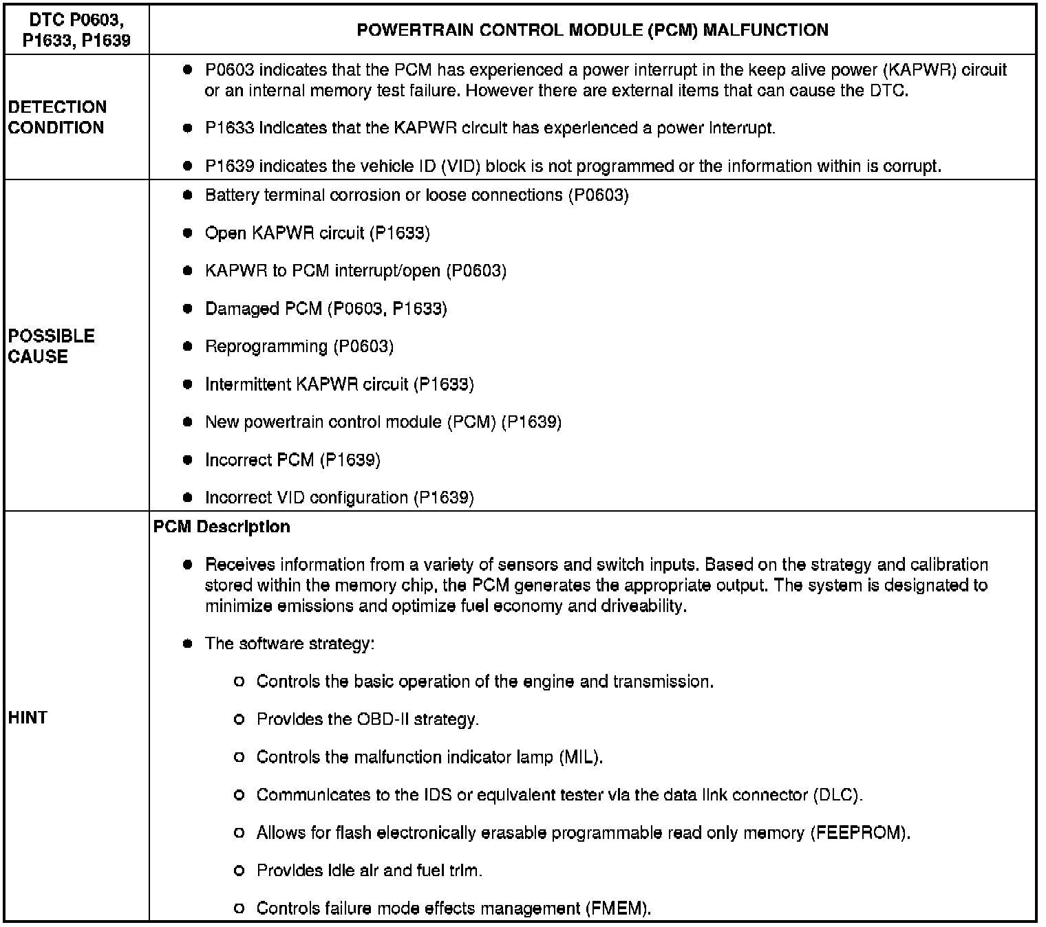 POWERTRAIN CONTROL MODULE (PCM) MALFUNCTION