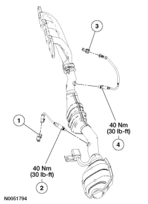 NOTE:Apply a light coat of anti-seize lubricant to the threads of the HO2S.To install, reverse the removal procedure.