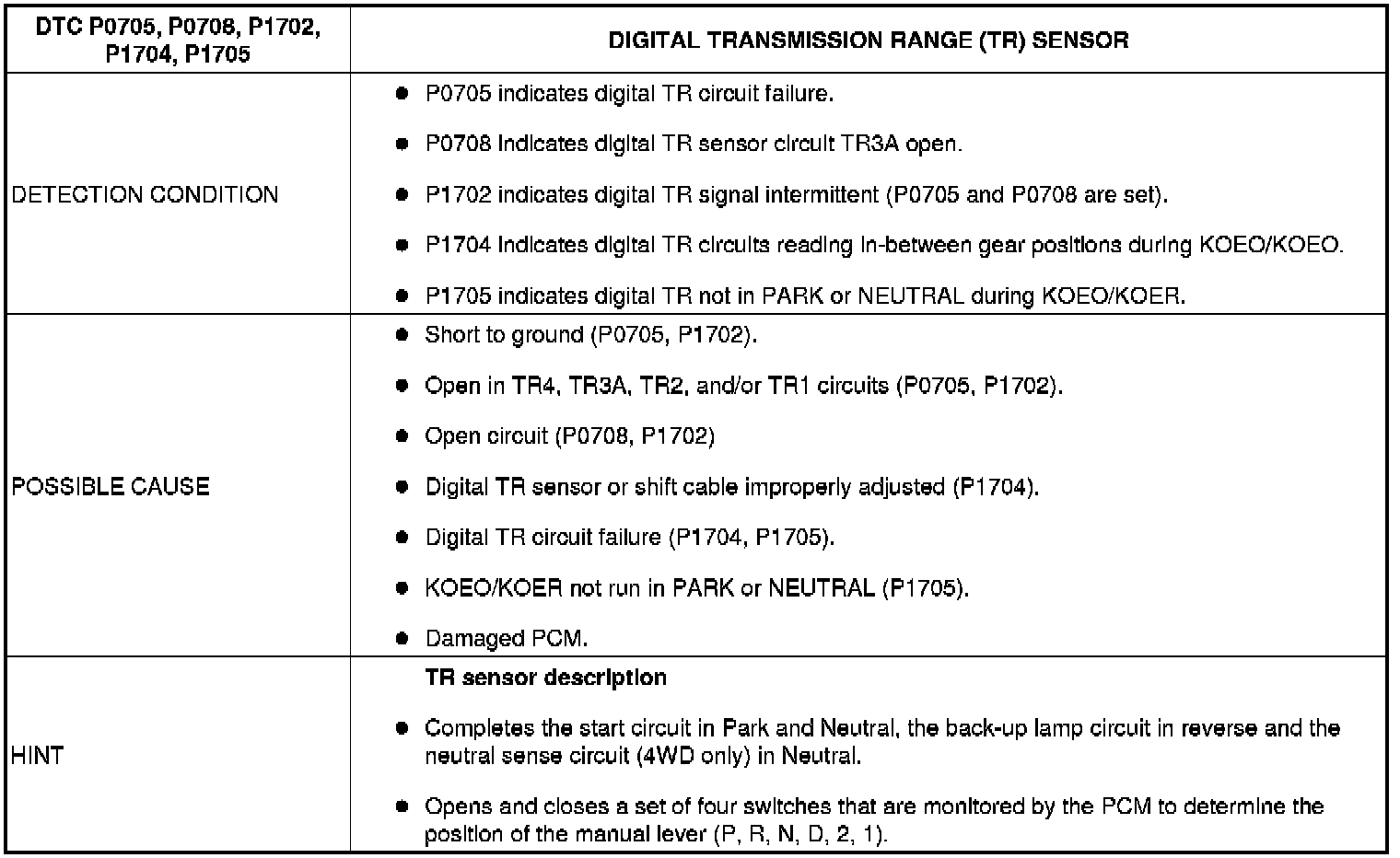 DIGITAL TRANSMISSION RANGE (TR) SENSOR