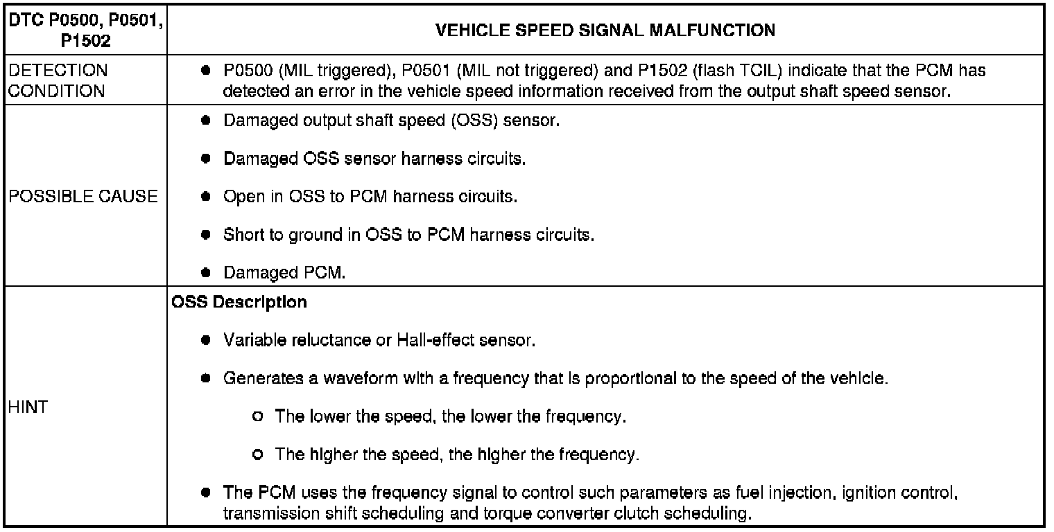 VEHICLE SPEED SIGNAL MALFUNCTION