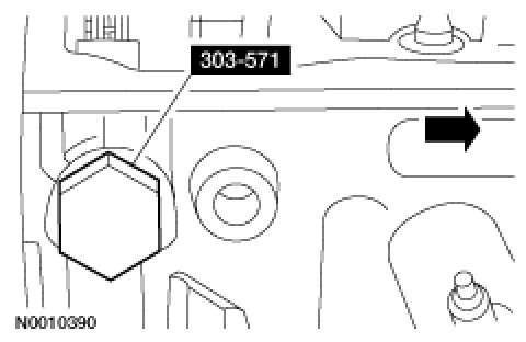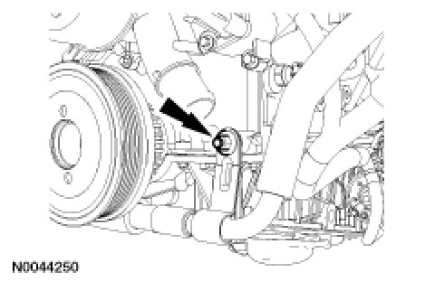 NOTE:Install a new O-ring seal on the tensioner and lubricate with clean engine oil.Install the LH hydraulic camshaft tensioner.Tightening Torque44 Nm {4.5 kgf-m, 32 ft-lbf}