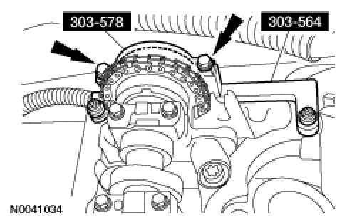 NOTE:The crankshaft timing tool SST must be installed on the damper and should contact the engine block, this positions the engine at TDC.