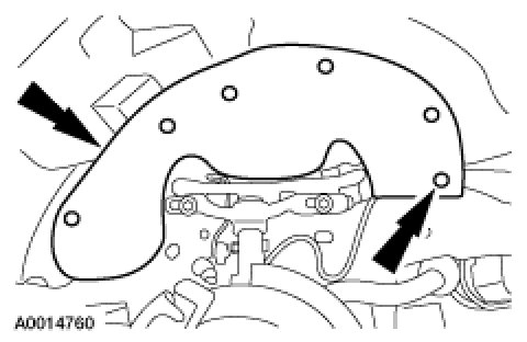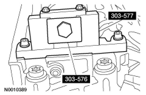 1. Install the camshaft sprocket holding tool SST and the adaptor SST on the front of the LH cylinder head and tighten the top 2 clamp bolts.Tightening Torque10 Nm {1.0kgf-m, 89 in-lbf}