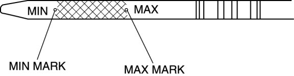 5. Remove the dipstick and verify that the oil level is between the MIN and MAX marks on the dipstick.