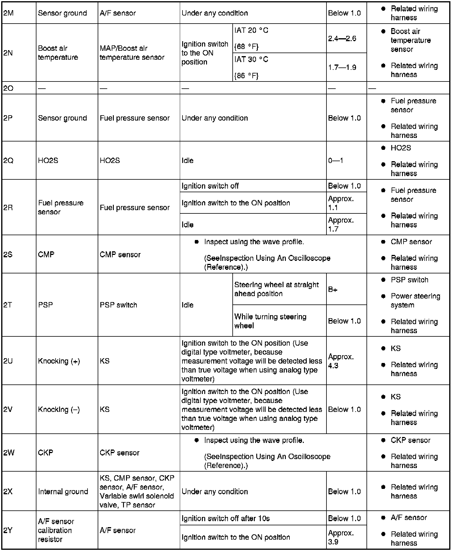 - The PCM terminal voltage can vary with the conditions when measuring and changes due to aged deterioration on the vehicle, causing false diagnosis. Therefore determine comprehensively where the malfunction occurs among the input systems, output systems, and the PCM.