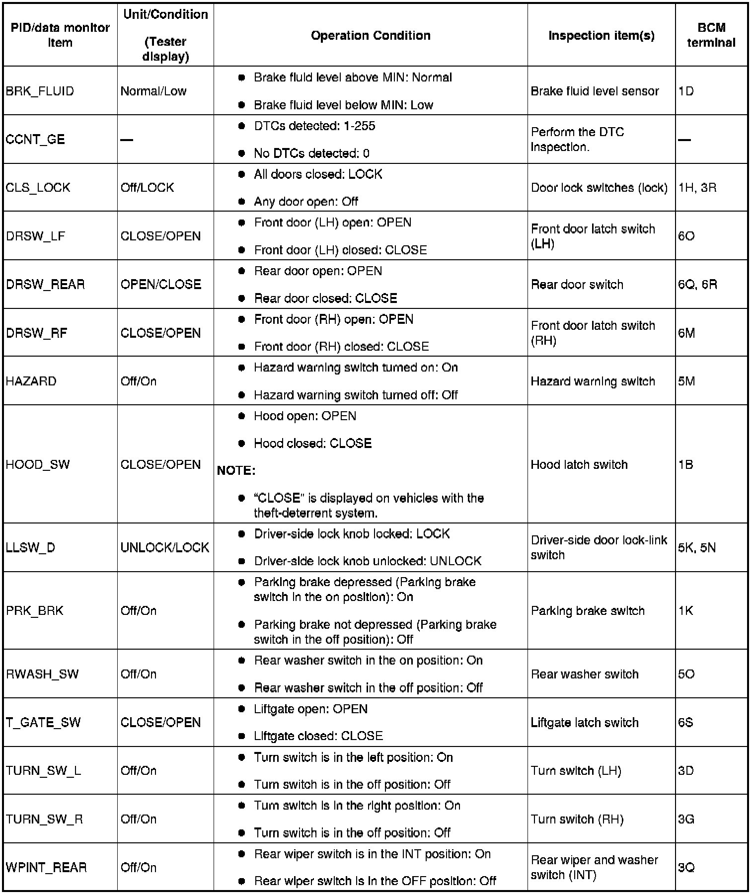 PID/DATA MONITOR INSPECTION [BCM]