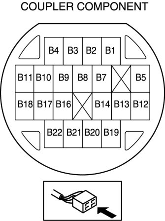 5. Verify that there is continuity between coupler component terminals B19 and B20.