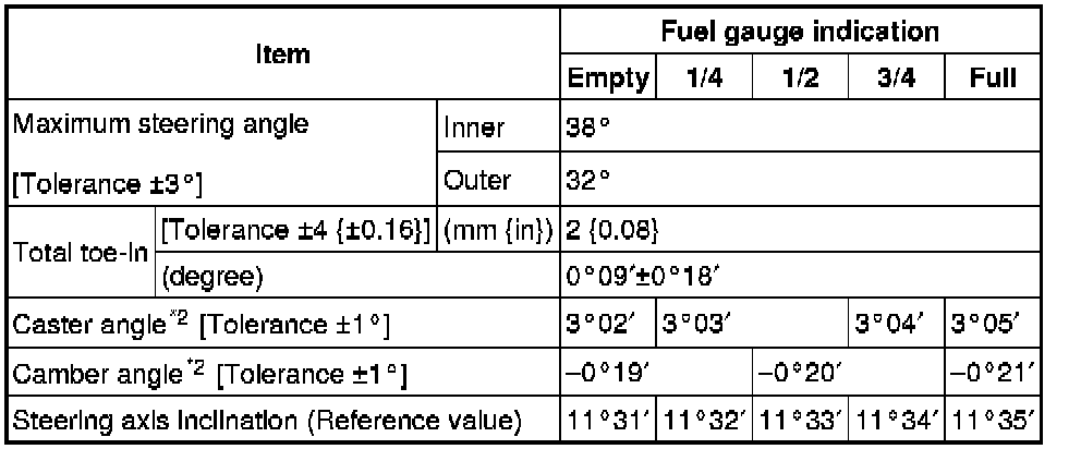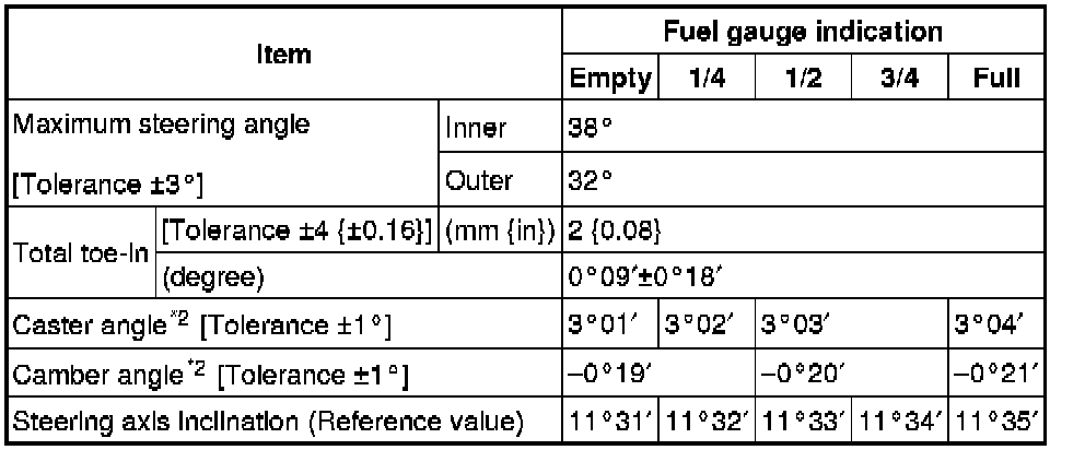 FRONT WHEEL ALIGNMENTFront wheel alignment [2WD] (Unloaded)*1