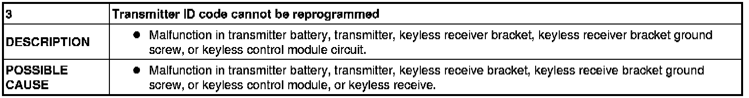 No.3 Transmitter ID Code Cannot Be Reprogrammed [Keyless Entry System]